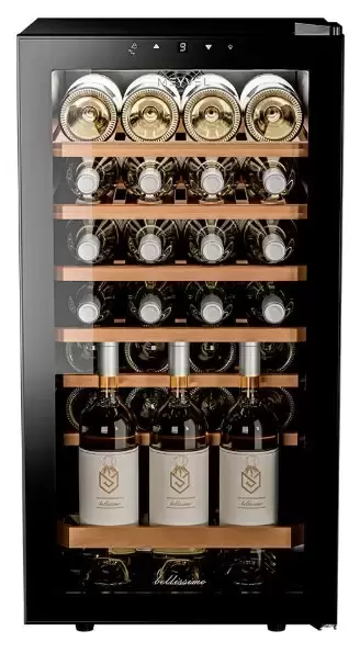 Компрессорный винный шкаф Meyvel MV28-KBF1 Элегантный винный шкаф Meyvel MV28-KBF1 — идеальное решение для обустройства стильного винного уголка в ресторане, баре или квартире. Компрессорная отдельностоящая модель вмещает до 28 бутылок и создает условия для правильного хранения и элегантной демонстрации винной коллекции. Уникальная система контроля температуры и влажности поддерживает оптимальные условия для длительного содержания напитков — от +5 до +18°C и влажность 60-80%. Двойное стекло с УФ-фильтром защищает бутылки от вредного воздействия солнечных лучей, сохраняя их превосходный вкус и аромат. 6 выдвижных полок из бука обеспечат удобный доступ к содержимому, на полке для нестандартных бутылок с увеличенным пространством можно разместить шампанское. Кроме этого, в шкафу можно располагать бутылки стоя, что удобно для хранения уже открытого вина. Изящная подсветка внутреннего пространства создаст особую атмосферу винного уголка. Регулируемые ножки помогут идеально выровнять шкаф, а утопленная ручка обеспечит его компактность и аккуратный внешний вид. Meyvel MV28-KBF1 — это надежность, функциональность и элегантность, которые сделают ваше винное хранилище предметом гордости и восхищения гостей. Доверьте свою коллекцию этому безупречному винному шкафу. Преимущества модели MV28-KBF1: вмещает до 28 бутылок; подсветка; регулируемые ножки; замок двери; стильный дизайн. Meyvel оставляет за собой право изменять параметры без предварительного уведомления.